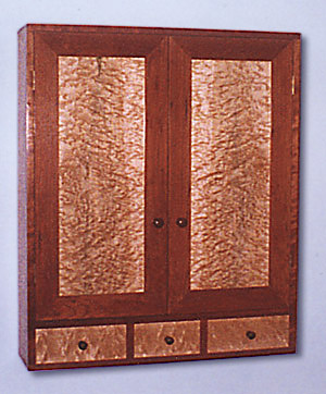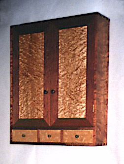 figured maple and cherry hanging cabinet